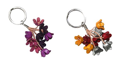 Pack of 2 Bella Pazzo Handmade Blue bell Flower Leather Keychain Backpack Animal Key Ring Clasp Bag Charm Handbag Purse charm