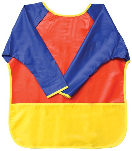 6 - 8 years. Designed for older art students, this roomy, easy to clean, vinyl apron gives great coverage for messy classroom projects. Features a large front pocket for keeping additional art supplies, and the hook 'n loop closure at the neck makes it easy to put on and take off. Measures 25" x 21".Feature