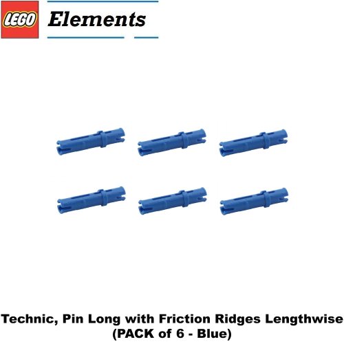-. Title : L.E.G.O Parts: Technic, Pin Long with Friction Ridges Lengthwise (PACK of 6 - Blue)