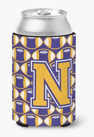 Caroline's Treasures CJ1064-NCC Letter N Football Purple and Gold Can or Bottle Hugger, Multicolor