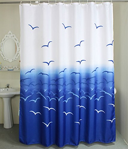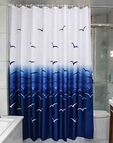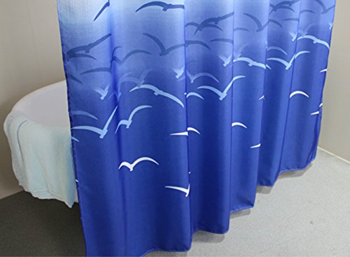 MangGou Fabric Shower Curtain,Nautical Seagull Shower Curtain Liner,Waterproof Polyester Bathroom Curtain With 12 Hooks,Mildew resistant,Machine Washable,Blue & White,72 x 72 inch
