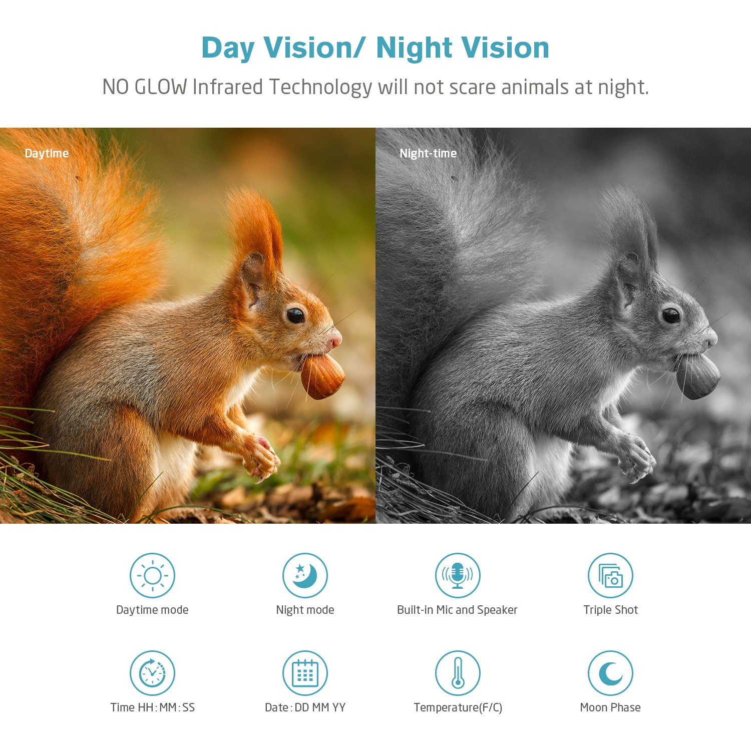 It is useful for animal observation · hunting scout reconnaissance · trap confirmation · crime prevention.