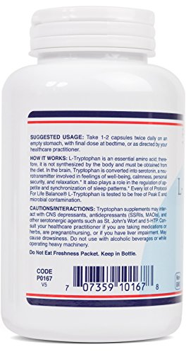 -. Binding : Health and Beauty -. Brand : Protocol For Life Balance -. Label : Protocol For Life Balance -. Manufacturer : Protocol For Life Balance -. ProductGroup : Health and Beauty -. ProductTypeName : HEALTH_PERSONAL_CARE -. Publisher : Protocol For Life Balance -. Studio : Protocol For Life Balance -. Title : Protocol For Life Balance - L-Tryptophan 500 mg