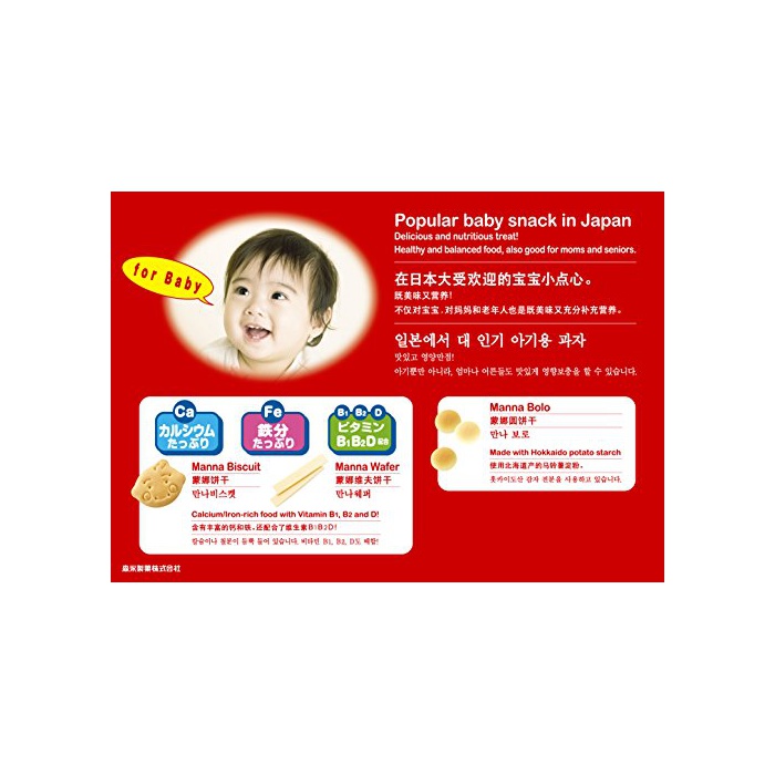 원재료:소맥분,쇼트닝,설탕,전분유,식물성 기름지,감자 나오지 않겠 분,옥수수 나오지 않겠 분,식염,패칼슘,팽창 제,유화 제(대두 유래)고, 《피로린》산철,향료,비타민B1,비타민B2,비타민D