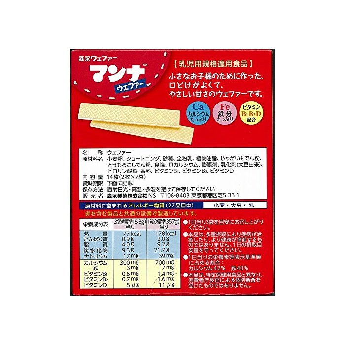 원본상품명: 森永製菓 マンナウェファ? 14枚(2枚×7袋)×6箱