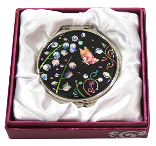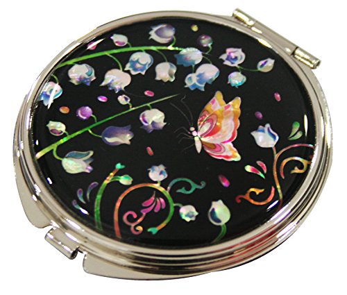 Handmade Handcrafted Mother of Pearl Magnifying Double Compact Cosmetic Makeup Round Hand Mirror lacquer wares inlaid with Strobilanthes Oliganthus Design