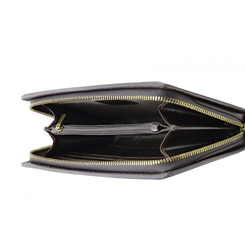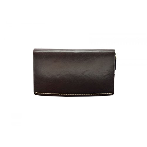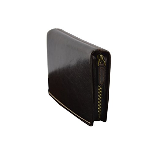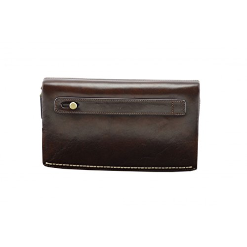 Product Description Genuine Leather Unisex Clutch - Denny Genuine 100% Italian leather clutch. Essential and trendy design, perfect for the man who likes practicality without renouncing elegance. Outside - 100% genuine Italian leather - zip closure - leather band with metal button - leather and metal details Inside - synthetic fabric lining - two separate compartments - central pocket with zip closure - pocket with zip closure - credit card pockets External Dimensions 23 x 3 x 13 cm Weight 0.3 Kg 0