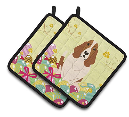 Caroline's Treasures Easter Eggs Basset Hound Pair of Pot Holders, 7.5HX7.5W, Multicolor