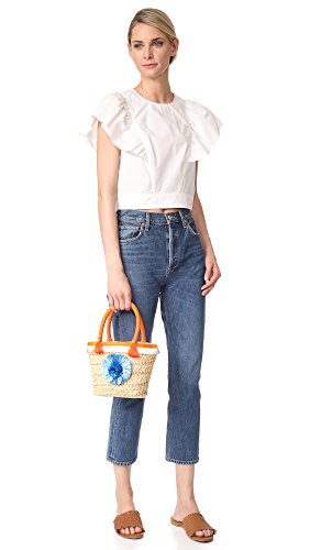 MILLY Pom Pom Straw Small Tote