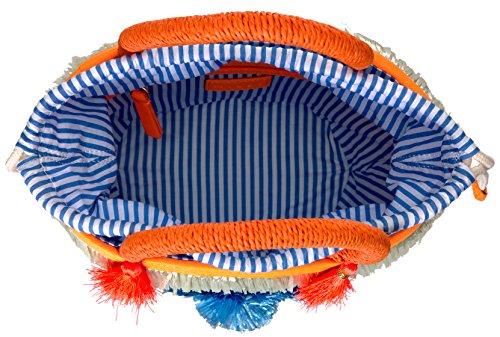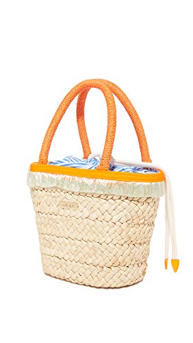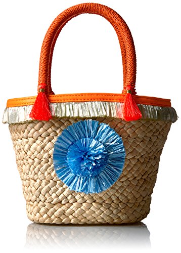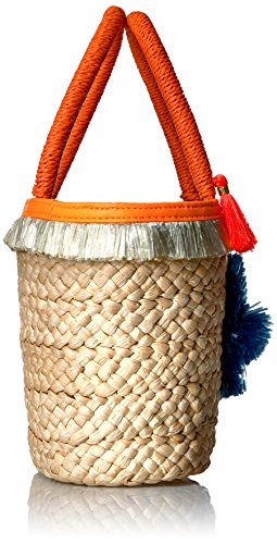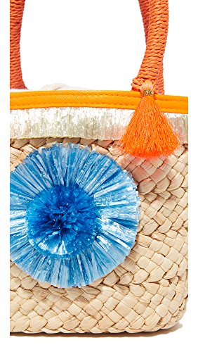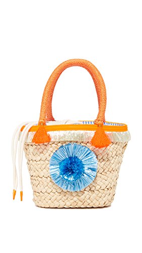 Product DescriptionPom pom straw small tote. Crafted in corn husk straw with hand woven pom pom and fringe details. Top drawstring closure. Interior: one zip pocket. Fully lined.0