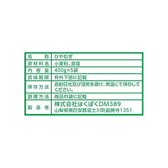 원본상품명: はくばく 絹の食卓ひやむぎ5入り400g×5