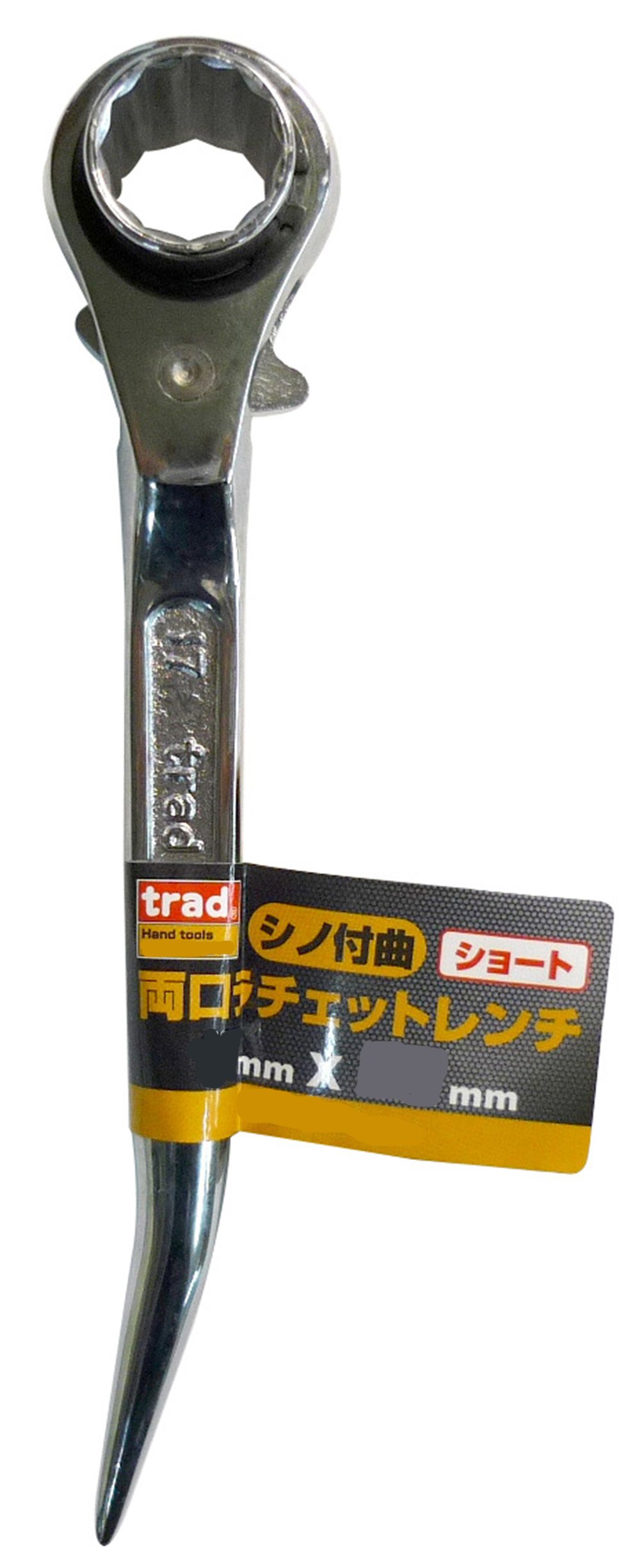 Ratchet wrench with bent shinot that can be used for fastening and hole matching of scaffolding assembly.
