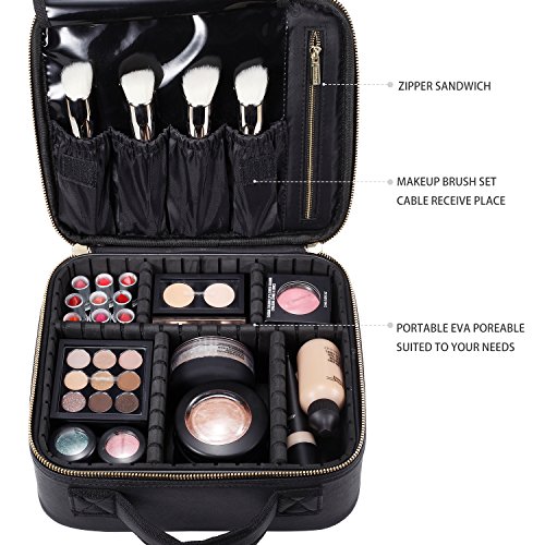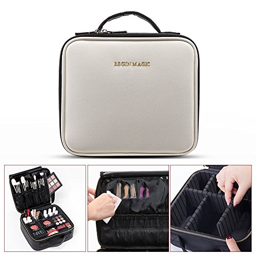 Simple and elegant design: The BEGIN?MAGIC cosmestic bag choose the nice materials and the unique designing, and craftsmanship is delicate on every stitch. BEGIN?MAGIC do not only focus on the bags'quality, and also reinvented fashion look. You are worthy it! Simple and Elegant Makeup Bags: Black and white color with the premium quality makes it good looking and practical. It will bring you good mood. Durable Makeup Case: PU Leather possessing functions such as easy to clean, water proof, shake proof, anti-wear and extrusion prevention (Easy to clean and fast dry) Multi Functional Beauty Train Case: You can also use it as a tote bag , Electronic bag and essential oils bag as well. Large And Roomy Cosmetics Case Makeup Artist Box give you enough room to carry every makeups and essentials and tools with you anywhere ,at any time Specification: Dimension: 10.1 x 3.5 x 14.1inch (Medium) Material:PU leather, high quality of plastic hard cover, Nylon fabric, sponge, EVA dividers, PVC waterproof coating design Color: Black and white Functions:comestic bag, travel makeup bag, Receive bag.