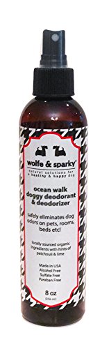 Product DescriptionWolfe Sparky's Ocean Walk Doggy Deodorant refrershes your pet's skin and coat, bedding, and any areas where your pet frequents! No one wants to hold a stinky pet!!0