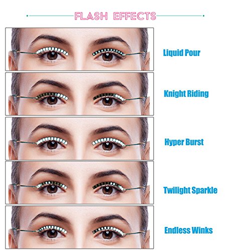 FIVE FLASH EFFECTS: Liquid Pour / Twilight Sparkle / Hyper Burst / Knight Riding / Endless Winks. The eyelash will flicker if you move your head. (Press the button for 2-4 seconds to turn on or turn off. Press again to other flash modes.)
