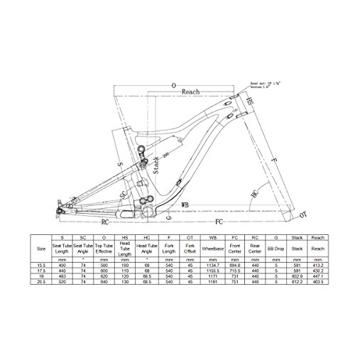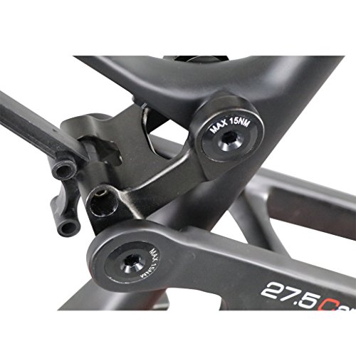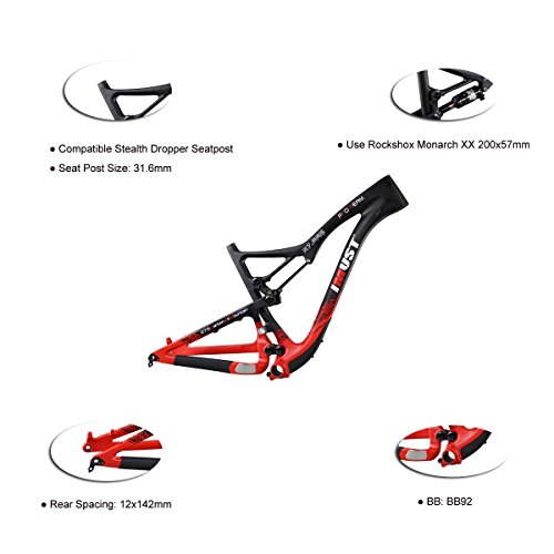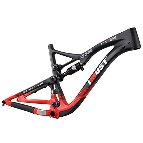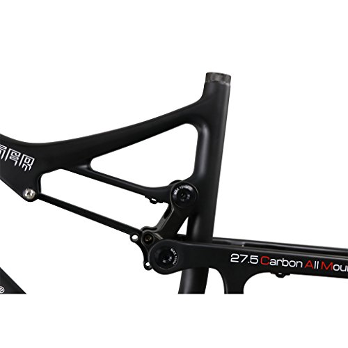 With IMUST, you can build the bike of your dreams! This frame is designed with longer wheelbase and reach, a slacker head tube angle, and a higher bottom bracket for the bike park rider. All IMUST products are manufactured in a state-of-the art facility using both rigorous internal quality assurance and quality control procedures, and an external third-party testing company. This 27.5 Carbon Frame is finished in UD matte. The available frame sizes are 15.5/17.5/19/20.5 inch seat tube length. Bearings are standardized sizes available through IMUST and most precision bearing suppliers. Rear dropouts are replaceable 12 X 142 mm thru-axle. The following specifications are to assist in your parts selection: Wheel Size: 27.5 (650b or 584 mm ISO inside rim diameter) Seatpost Diameter: 31.6 mm Seatpost Clamp Diameter:34.9 mm (IMUST seatpost clamps are available) Headset: Integrated 1-1/8" X 1-1/2" (Cane Creek 40.IS41 Short Cover or equivalent. IMUST headset included with this frame) Bottom bracket: BB92 Shock Size: 200 X 57 mm Suspension Travel: 150 mm (note, the head and seat angle slacken about 1 degree for about every 15 mm increased front travel) Brake: 160 mm Disc Brake Axle: 142 X 12 mm E-thru style (not included, but available) All internal cable routing Geometry (for 15.5 inch frame, other sizes are listed in the chart) Top Tube (effective): 580 mm Seat Tube (BB Center to Top): 400 mm Chainstay (actual): 440 mm Seat Tube Angle: 74 degree (our seat angle is measured from the seat tube center to the bottom bracket center) Bottom Bracket Drop: 5 mm Head Tube Length: 100 mm Head Tube Angle: 68 degree Wheelbase 1,135 mm (with 45 mm fork offset) Stack: 591 mm Reach: 413 mm Package included: Frame Headset (IMUST model H212) 0