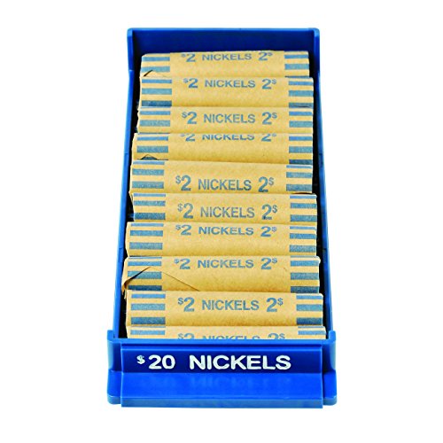 MMF Industries Porta-Count Rolled Coin Storage Trays, $20/Nickels, Blue, Pack of 10 (212080508)
