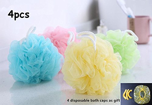 King&Pig 4 pcs colorful Bath Ball, Shower Bath Sponge Pouf, Sponge Body Scrubber Bath Pouf Shower Puff for Family