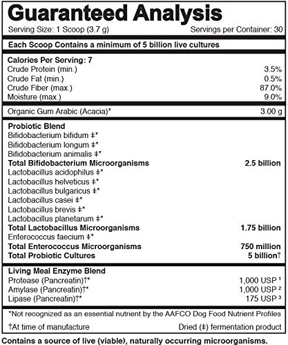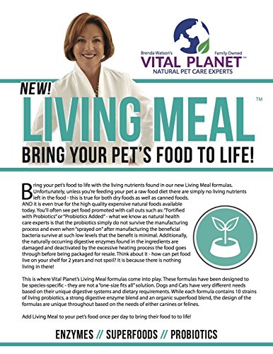 LIVING NUTRIENT BLEND Adding critical, living nutrients to your dog's food each day. No more dead food. Think your dog's food contains all they need? Think again. Did you know that most dog food is dead? It is. And most canned dog food is just as dead. Now you can add living nutrients to your dog's food. LIVING MEALTM is specially formulated for dogs to provide raw, live probiotics combined with enzymes and a unique, organic superfood blend. Bring your dog's food to life every day!Feature