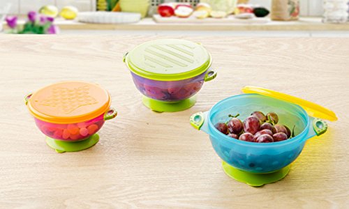 -. Title : Baby Feeding Set and Food Storage Spill Proof Suction Bowl Set BPA Free with Seal-Easy Lids, 3 Count for Different Size, Heat Resistant, Microwave Safe