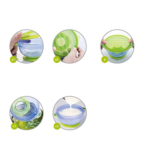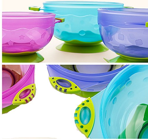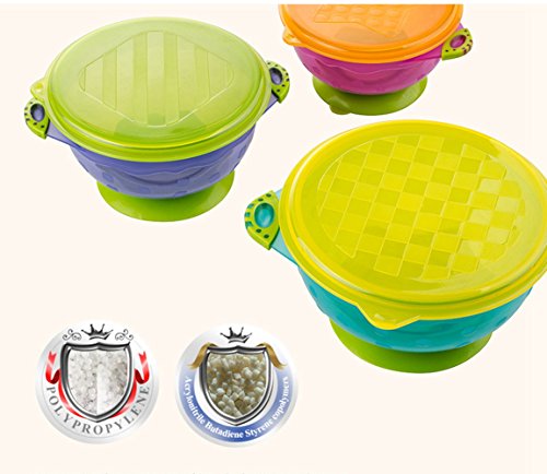-. Feature : SAFEB & HEALTH:Our products have been certified FDA safe and free of any harmful chemicals. Each bowl set is proven to be Latex free, Lead free, BPA free, and Phthalate free. / DISIGNED FOR SELF-FEED:shaped and designed for toddlers learning to self-feed. Suction attaches to most surfaces and is difficult for a young toddler to spill, but easy for mom to remove. / PERFECT TO GO STORAGE: The snap tight lids make the bowls great for food storage and can be stacked on top of each other.Our trio of BPA free infant and toddler bowls has an integrated, permanently attached suction base that grips a surface and wont let go without your help. / Large: 4.49× 2.64 inches Medium: 4.02× 2.48 inches Small: 3.50 × 2.32 inches