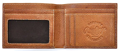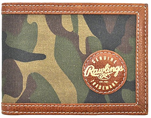 The Rawlings Rugged Series Bi-Fold Wallet For Men carries your everyday essentials in an organized, easy-to-access men's wallet so you can find what you need quickly. The bi-fold wallet is made of a printed camo canvas with a glove leather trim and interior. The iconic Rawlings embossed trademark accents the exterior, and the interior leather features an embossed Rawlings logo.Feature