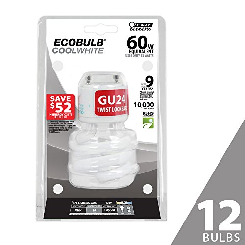 Feit BPESL13T/GU24/41K 60W Equivalent CFL Twist GU24 Base Bulb (Pack of 12), Bright White