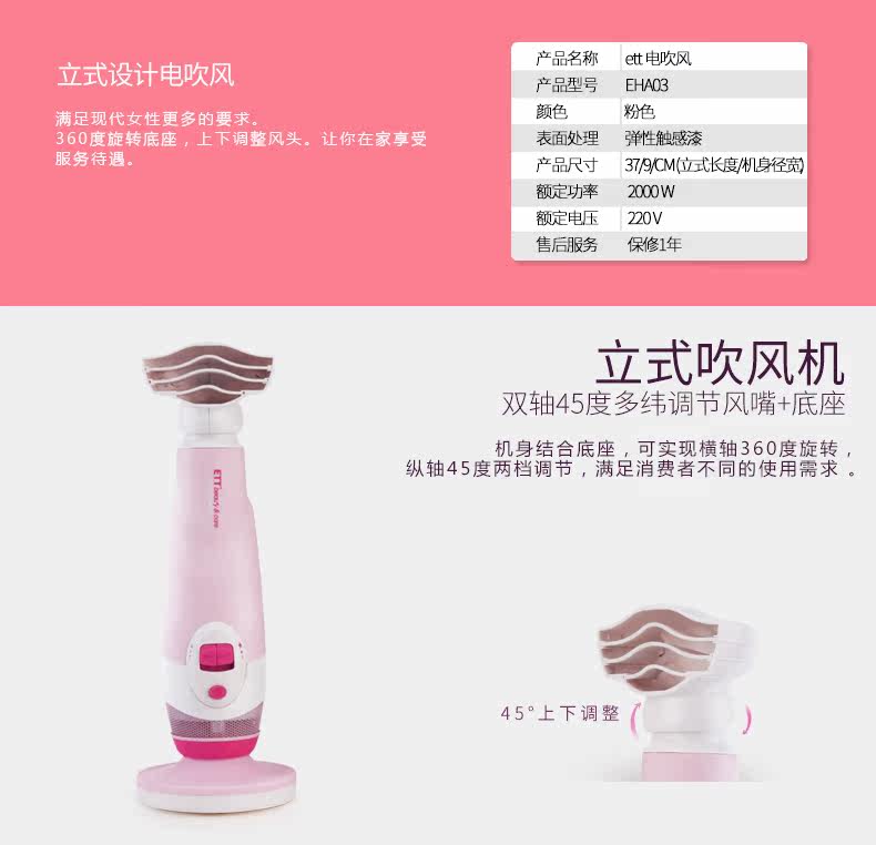 ETT电吹风梳妆台立式款大功率2000W恒温护发专业吹风机