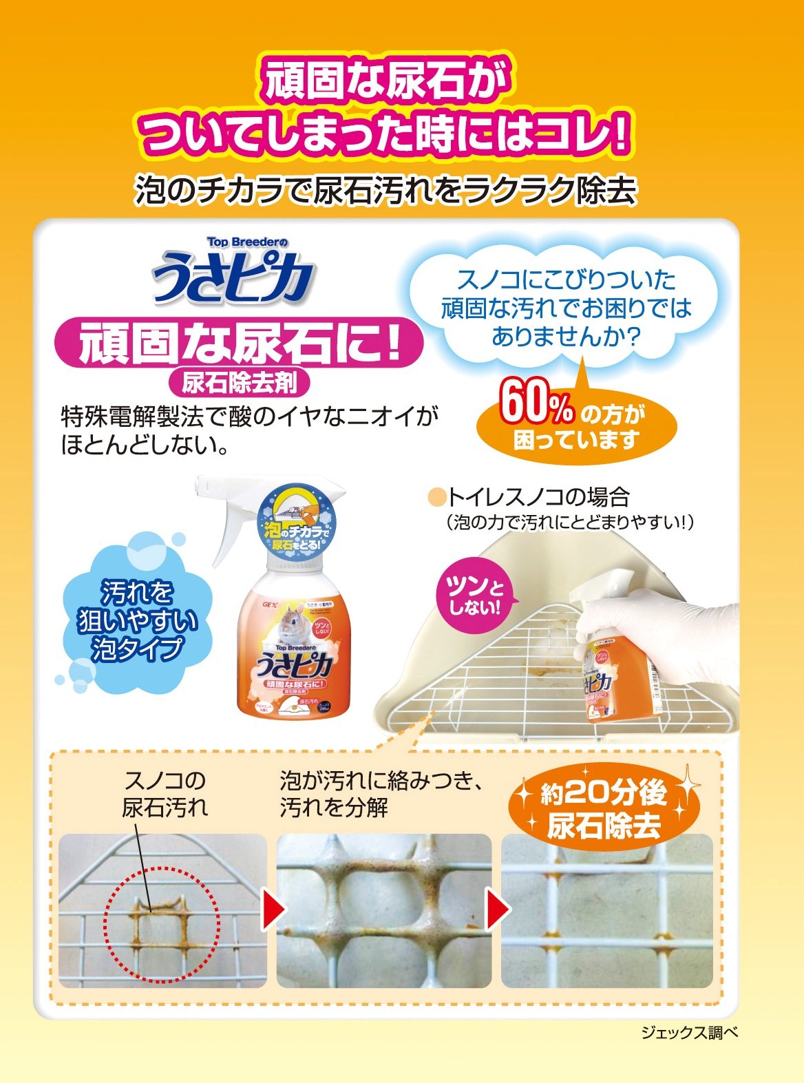 Pinpoint injection to the urinary stone dirt stuck to the bottom tray of the toilet and cage.