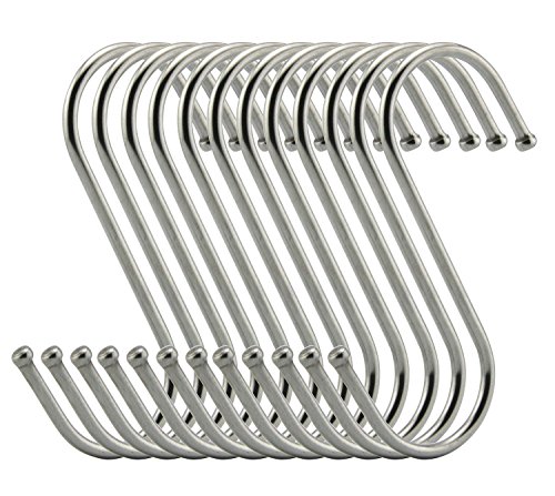 BRAND: RuiLing MATERIAL: 100% Genuine Solid 201 Stainless Steel Heavy Duty. Made of heavy-gauge 201 stainless steel, these hooks will put your kitchen gadgets, tools, pots and pans on display, keeps them within quick reach, and frees up cabinet space, all at the same time. The tools don't rub or scrape against one another like in a drawer, which minimizes damage to your valuable investment. The hooks are easy to install on any rack or shelf without any tools. ADVANTAGE: Durable - Genuine Solid 201 stainless steel, Not rust, Corrosion resistance, High strength, the hooks are more durable and heavy duty to be used. Can be used outdoors or indoors in any kind of weather conditions. Sleek and Stylish Design will look great in your kitchen! Hook ends are flat, not pointed, For added safety. Multi-purposed: Perfect for your KITCHEN UTENSIL, such as aprons, hot pads, spoons,pot; Perfect for your CLOSET ORGANIZATION,hanging your purses,lint roller,hats, bags,clothes; Perfect for SHOWER ROOM hanging shampoos, soaps, body cleansers, razor and more through the baskets or shower bag; Perfect for GARDENING hanging plants, bird-feeders, and garden decorations. Perfect for WORK SHOP hanging wrench, spanner,forceps,or other Heavy tools. Care instructions: Wipe clean with a damp cloth. PACKAGE INCLUDED: 12PCS Size Large S hooks. 0 |