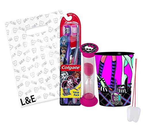 (PG)/Oral Care/Power Toothbrushes/DIRECT FROM USA/Monster High Inspired Girl's 4pc Bright Smile Oral Hygiene Set! 2pk Soft Manual Toothbrush, Bru...