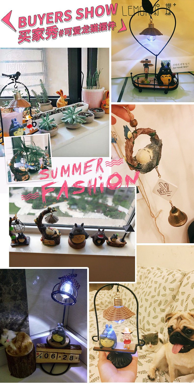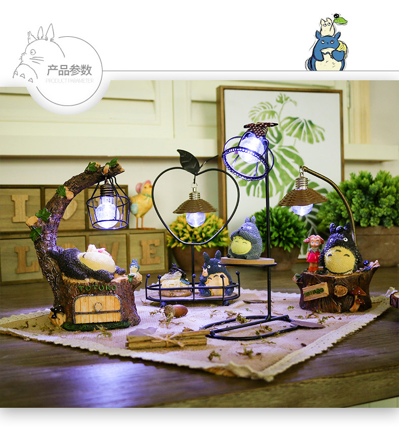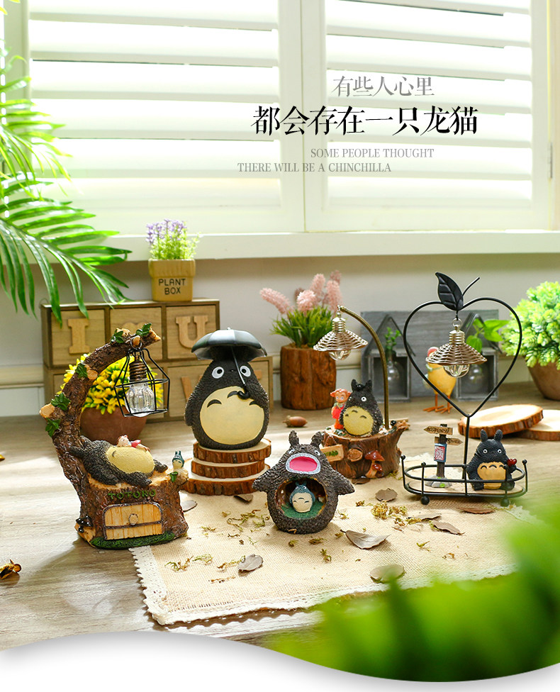 󰄬可爱龙猫书桌小摆设创意家居客厅房间卧室床头柜少女心装饰品摆件