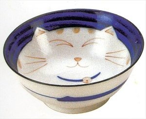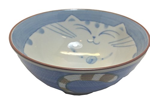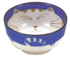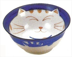 Japanese Porcelain Noodle Bowl with Maneki Neko Design Measures 4-1/2in Diameter.