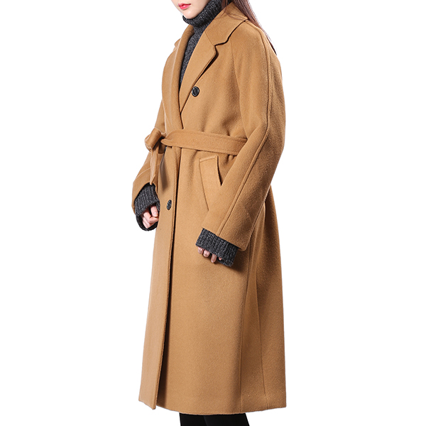 솔리드 컬러 바탕에 탈착 가능한 벨티드 장식이 여성스러운 무드를 자아내며 사이드 포켓 디테일로 포인트를 준 롱코트입니다.