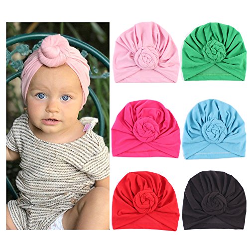 Gellwhu Pink White Blue Newborn Girl Nursery Beanie Hospital Hat With Large Bow (6 Colors Pack P)