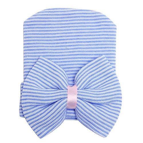 Gellwhu 5pcs Infant Baby Girls Striped Nursery Newborn Hospital Hat Cap with Big Bow