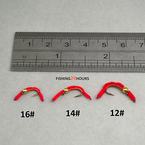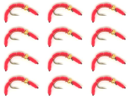 -. Title : 12pcs / 1 Dozen Fly Fishing Bead Head Worm Red Hook Size 12# 14# 16# Available Trout Flies NEW