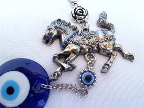 Blue Evil Eye with Tribute Horse Hanging Decoration Ornament (With a Betterdecor Pouch)-019