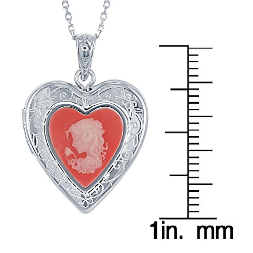 Sterling Silver Pink Cameo Heart Locket with 18" Chain