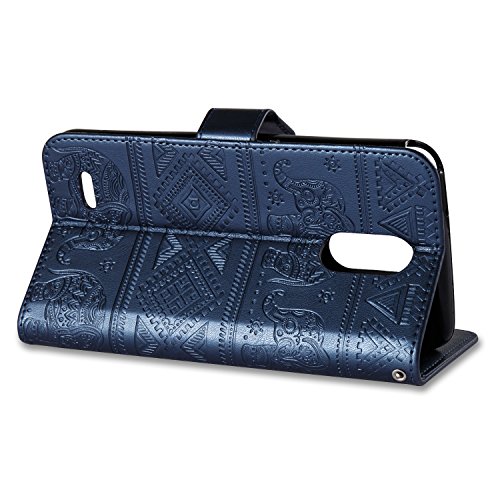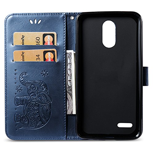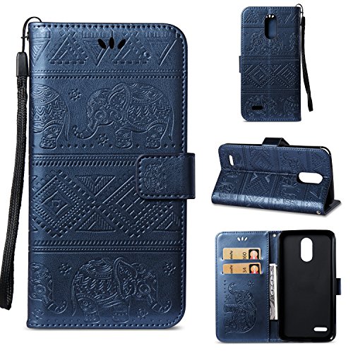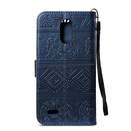 LG Stylo 3 Case,LG Stylus 3 Case,DAMONDY Elephant Embossed Flowers PU Leather Magnetic Flip Cover Stand Card Holders & Hand Strap Wallet Purse Case for LG Stylo 3/LG LS777-deep blue