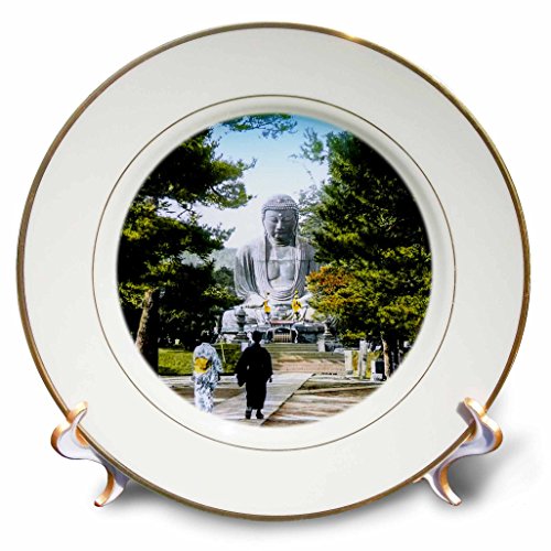 3D Rose the Great Buddha At Kamakura Vintage Hand Colored Slide Japanese Porcelain Plate, 8"