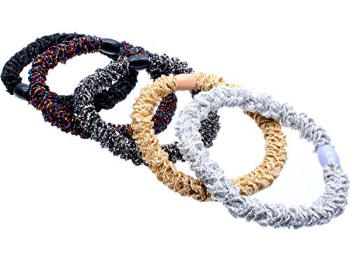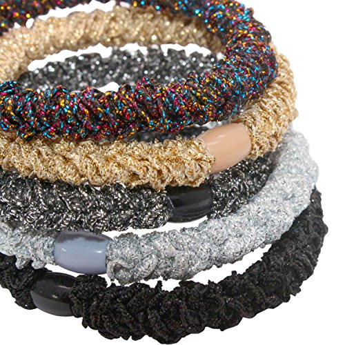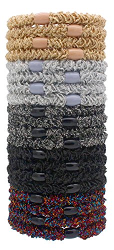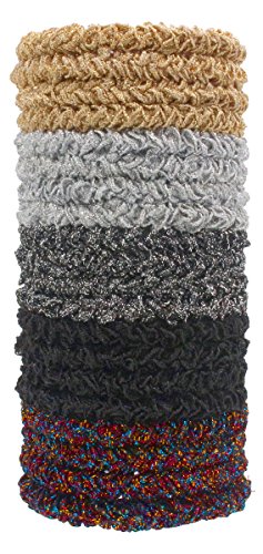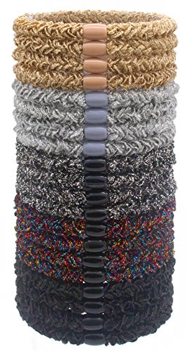 -. Title : Fashion & Lifestyle 20 Pack Large Hair Ties Pony Ponytail Holders - Thick Solid Stretchy Elastic Hair Bands Boutique Woven Ropes for Girls Women and Ladies, Glittering