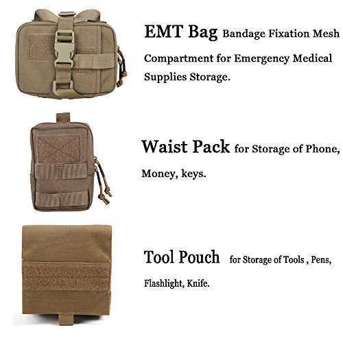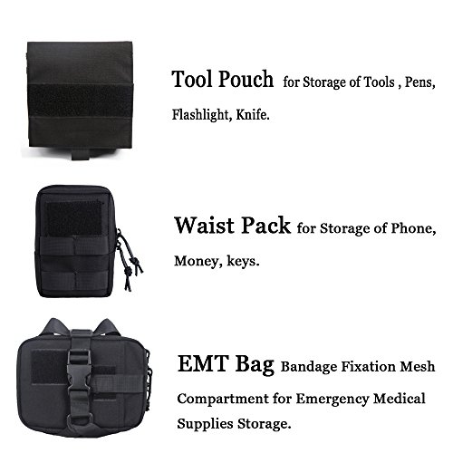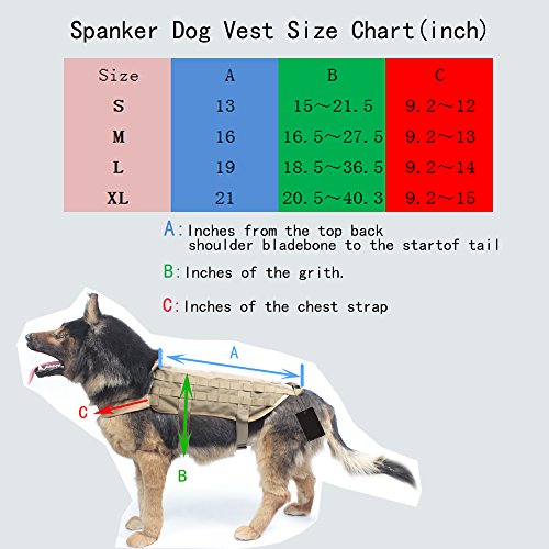 -. Feature : The vest comes with three detachable pouches for carry different daily items, not only can be added on the vest but also other tactical gears / Molle on both side for attaching other accessories such as magazine pouches, water bottles, food snacks, etc / Adjustable webbing for wearing stability / Hook and loop panel for unique patch furniture; mesh design inside for better comfort and ventilation / Three size to choose, fit dog's back length about 41cm to 54cm, please check the size before order