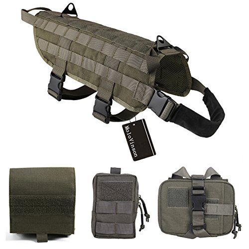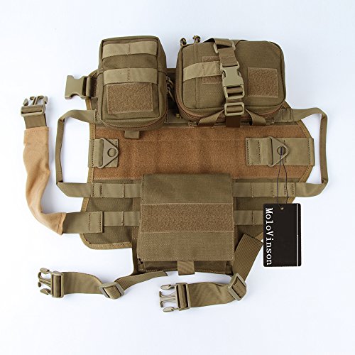 -. Title : MoloVinson Tactical Dog Molle Vest Harness Training Camping Dog Vest with Detachable Pouches Military Patrol K9 Dog Harness for Medium & Large Dog