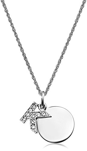 • Sterling silver double-pendant necklace featuring round polished disc and crystal-set initials character