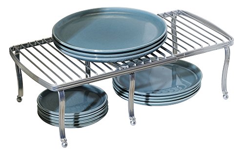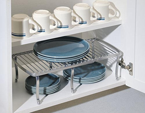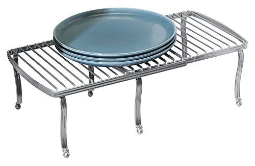 mDesign Free Standing Expandable Storage Shelf for Kitchen Countertop, Pantry, Cabinet - Chrome Silver