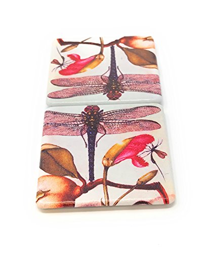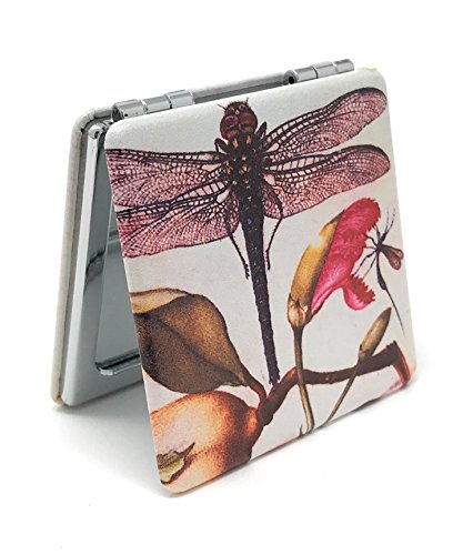 Purse Pocket Mirror - PU Leather Vintage Dragonfly Print - 2 in 1 With 2X Magnification
