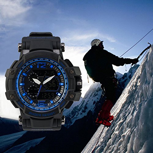-. Title : Lianfeng Men's Outdoor Sport Watch, Dual Time Digital Analog Wrist Watch, Quartz Waterproof Wristwatch with LED Display