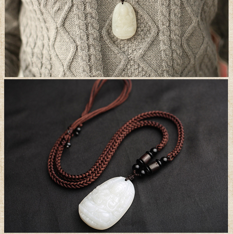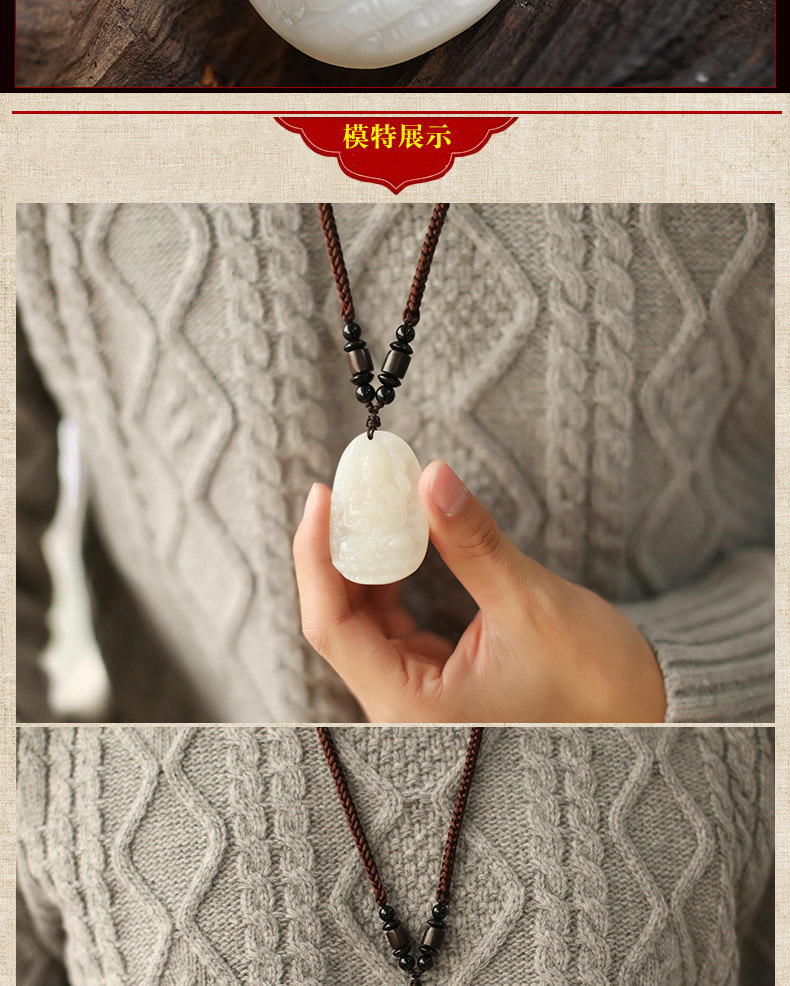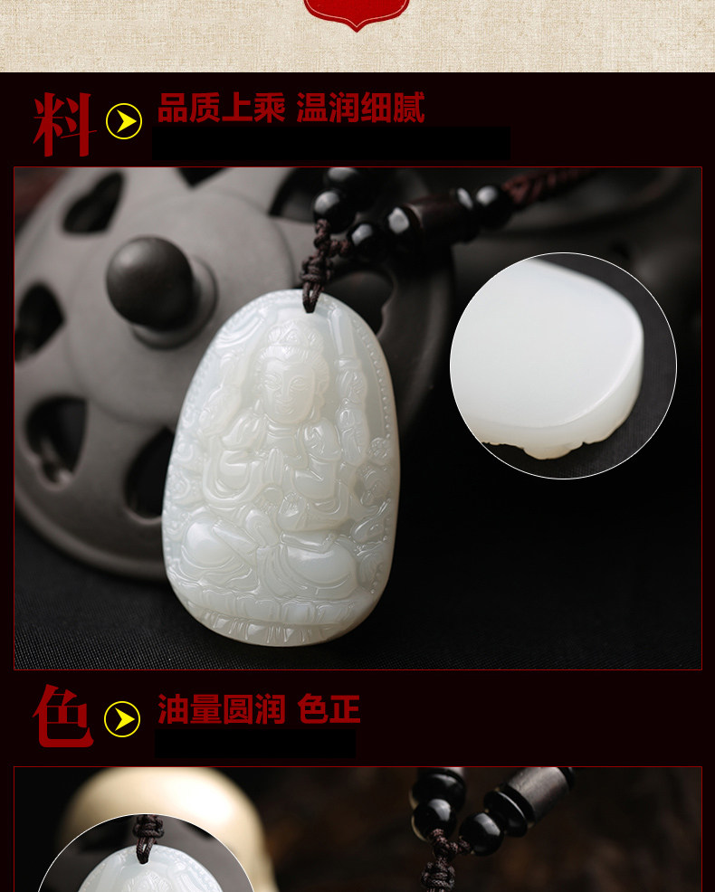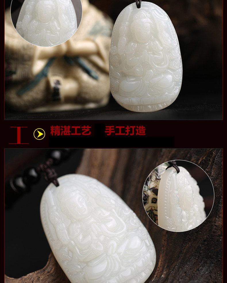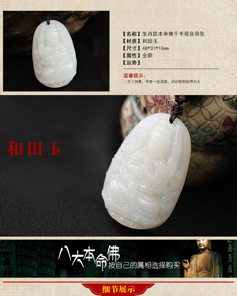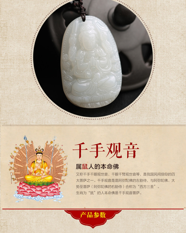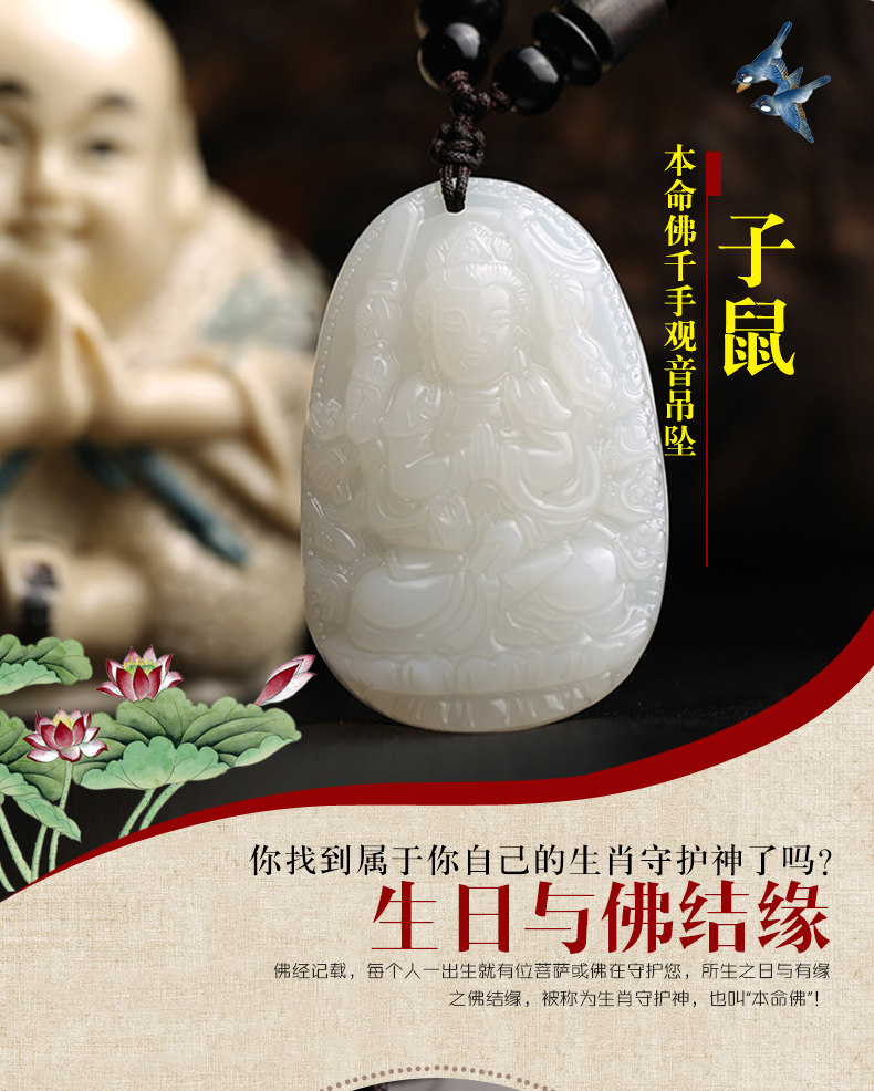 开光天然和田玉生肖属鼠千手观音菩萨守护神本命佛吊坠项链青白玉