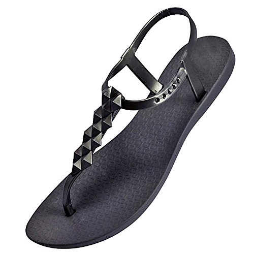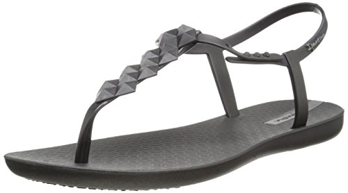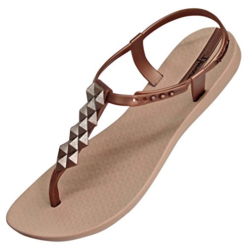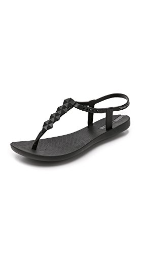 Clustered pyramid studs accent the T-strap on these rubber Ipanema sandals. Button ankle strap. Molded footbed and rubber sole.